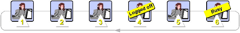 | 鏈型順序 分配到這個(gè)工作組的電話(huà)將按照預(yù)先配置的順序進(jìn)行分配: 此外,管理員還可以: 座席登陸退出步驟 | ||||||||||||